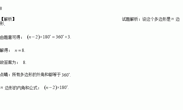 如果一个多边形的内角和等于它的外角和的3倍,那么这个多边形是__________边形.