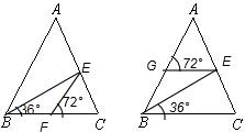 解:在△ABC中,AB=AC,∠A=36°,故∠B=∠C=72°=2∠A.