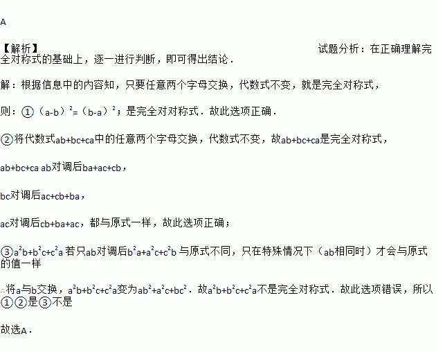 若将代数式中的任意两个字母互换,代数式不变,则称这个代数式为完全对称式,如