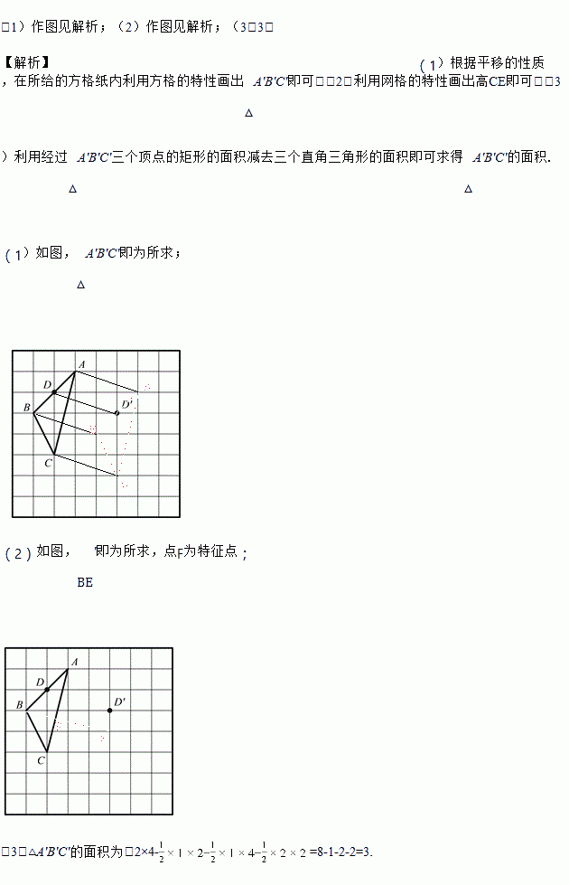 (2)利用网格的特征,画出AC边上的高BE并标出画法过程中的特征点;