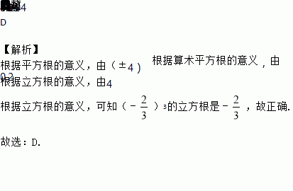 C. 64的立方根是±4 D. (﹣)3的立方根是﹣