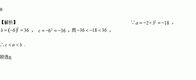 设a=-2×32,b=(-2×3)2,c=-(2×3)2,那么a、b、c的大小关系是( )