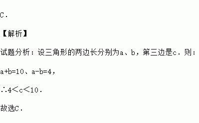 已知三角形的两边a=3,b=7,则下列长度的四条线段中能作为第三边c的是( )