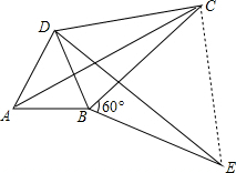 (2)如图,将△ABC绕顶点B按顺时针方向旋转60°后得到△DBE,连接