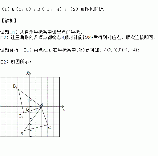 (2)将△ABC绕点A顺时针旋转90°,画出旋转后的△AB1C1.