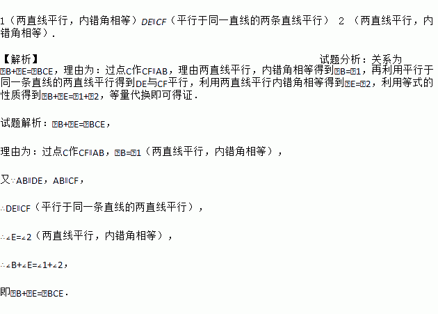∴∠B+∠E=∠1+∠2