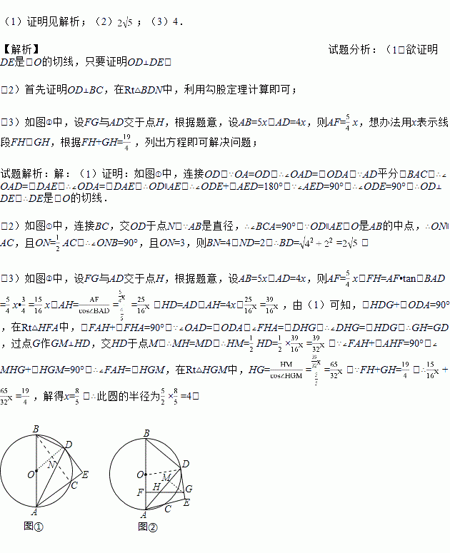 已知AB是⊙O的直径,C是圆上一点,∠BAC的平分线交⊙O于点D,过D作DE⊥AC交AC的延长线于点E,如图①.