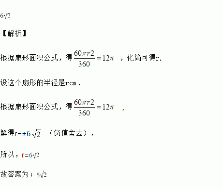 一个扇形的面积是,圆心角是,则此扇形的半径是______cm.