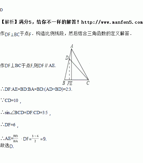 已知:如图,在中,是边上的一点,且,,,则边上的高的长为( )