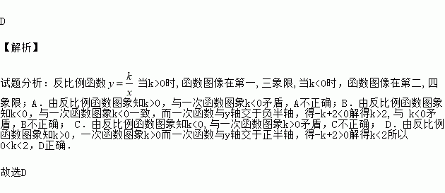 反比例函数y=与一次函数y=kx﹣k+2在同一直角坐标系中的图象可能是( )