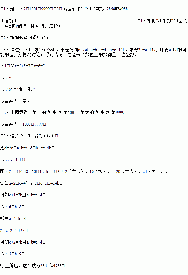 (1)请判断:2561 (填“是”或“不是”)“和平数”