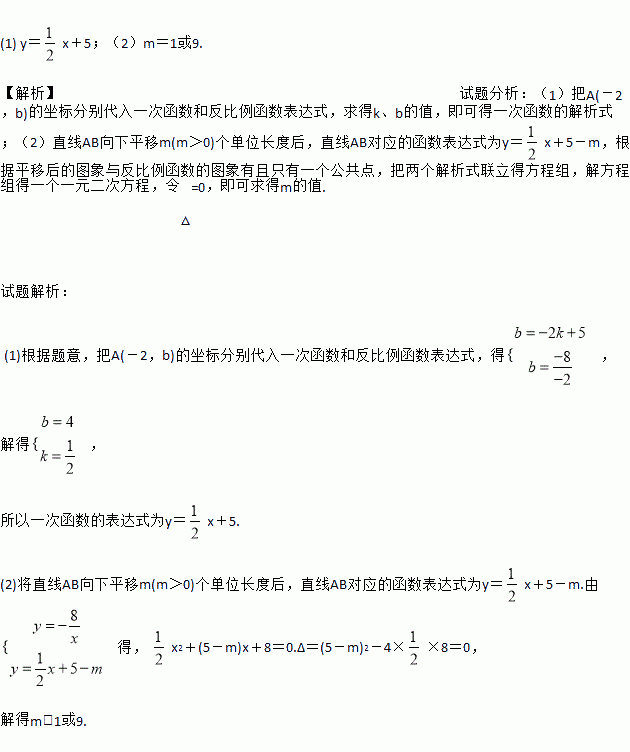 (2)Èô½«Ö±ÏßABÏòÏÂÆ½ÒÆm(m£¾0)¸öµ¥Î»³¤¶Èºó£¬Óë·´±ÈÀýº¯ÊýµÄͼÏóÓÐÇÒÖ»ÓÐÒ»¸ö¹«¹²µã£¬ÇómµÄÖµ£®