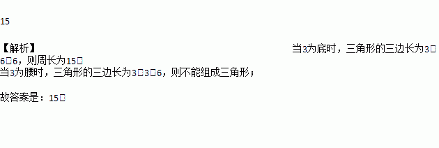 已知等腰三角形的两边长分别为3和6,则它的周长等于_______。