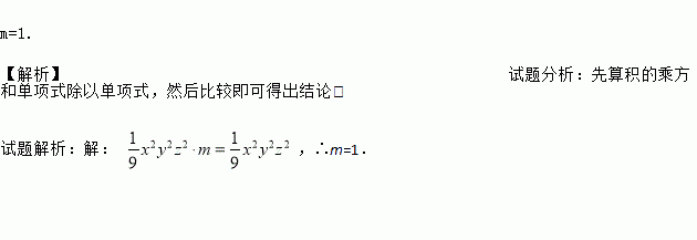 已知(-xyz)2·m=x2n+1yn+3z3÷3x2n-1yn+1z,求m.