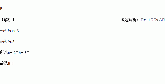 把多项式x2+ax+b分解因式,得(x+1)(x-3)则a,b的值分别是( )