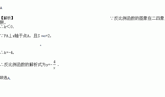 如图,已知点P是双曲线y=(k≠0)上一点,过点P作PA⊥x轴于点A,且S△PAO=2,则该双曲线的解析式为( )