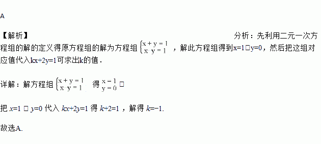 的解是方程x﹣y=1的解,则k的值( )