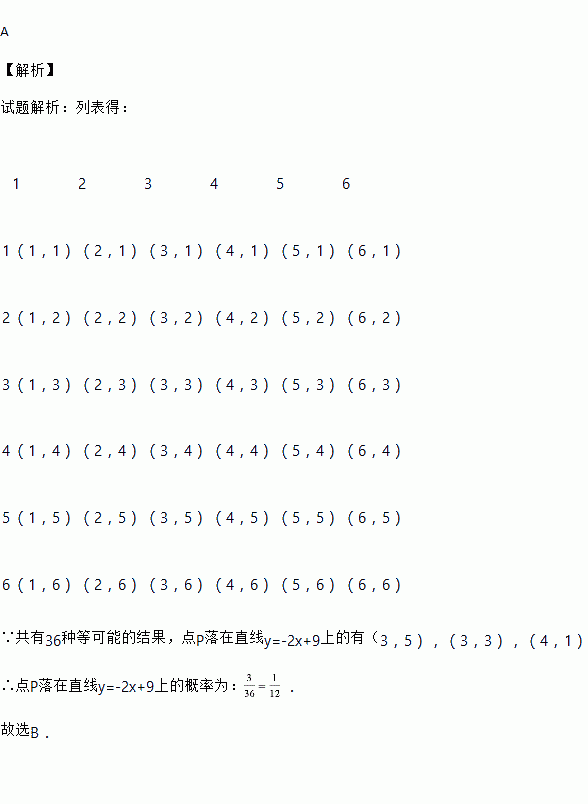 同时抛掷A、B两个均匀的小立方体(每个面上分别标有数字1,2,3,4,5,6),设两立方体朝上的数字分别为x,y,并以此确定点P(x,y),那么点P落在抛物线y=-x2+3x上的概率为( )