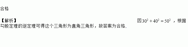 合格 【解析】因,根据勾股定理的逆定理可得这个三角形为直角三角形,故答案为合格.