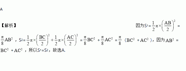 如图,分别以直角⊿的三边为直径向外作半圆.设直线左边的阴影部分的面积为,右边的阴影部分的面积和为则( )
