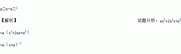 a(x+a)2 【解析】试题分析:ax2+2a2x+a3 =a(x2+2ax+a2) =a(x+a)2