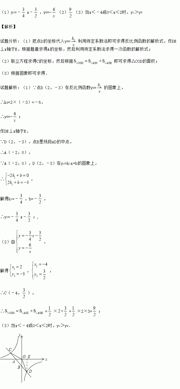 的图象分别交于C、D两点,点D(2,﹣3),点B是线段AD的中点.