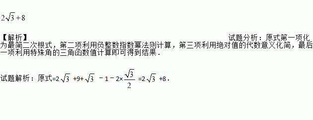 计算: +()﹣2+|﹣1|﹣2sin60°.