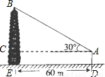 如图,小强和小明去测量一座古塔的高度,他们在离古塔60m的A处,用测角仪测得古塔顶的仰角为30°,已知测角仪高AD=1.5m,则古塔BE的高为( )A.(20