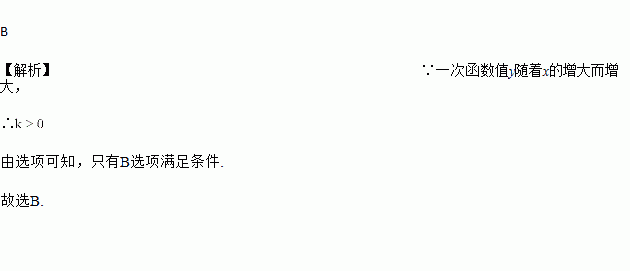 若y=kx+2的函数值y随着x的增大而增大,则k的值可能是( )