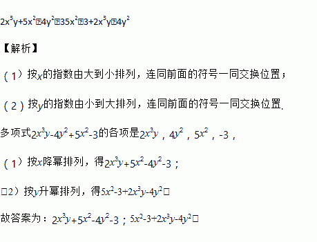 把多项式2x3y﹣4y2+5x2﹣3重新排列: