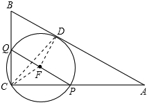 设QP的中点为F,圆F与AB的切点为D,连接FD、CF、CD,则FD⊥AB.![]()