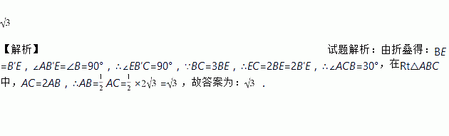 如图,矩形ABCD中,对角线AC=2,E为BC边上一点,BC=3BE,将矩形ABCD沿AE所在的直线折叠,B点恰好落在对角线AC上的B′处,则AB=___________.
