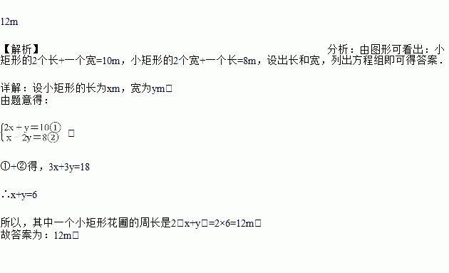 如图,在长为10m,宽为8m的矩形空地上,沿平行于矩形各边的方向分割出三个全等的小矩形花圃,其示意图如图所示.则其中一个小矩形花圃的周长是______m.