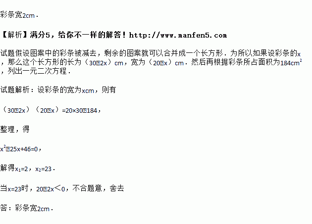 如图,要设计一幅宽,长的图案,其中有两横两竖的彩条,且横、竖彩条的宽度相等,如果要使彩条所占面积为,应如何设计彩条的宽度?