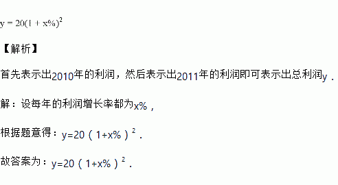 某乡镇企业年的利润为万元,若该企业以后每年的利润增长率都为,那么年该企业的利润万元应表示为________.