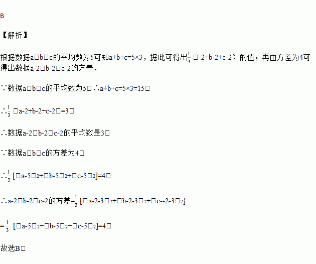 已知一组数据a、b、c的平均数为5,方差为4,那么数据a+2、b+2、c+2的平均数和方差分别为( )