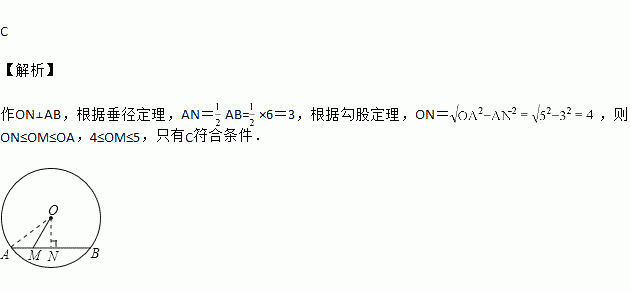 如图,已知⊙O的半径为5,弦AB=6,M是AB上任意一点,则线段OM的长可能是( )