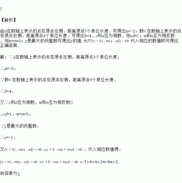 已知数a在数轴上表示的点在原点左侧,距离原点3个单位长度,数在数轴上表示的点在原点右侧,距离原点4个单位长度,c和d互为倒数,m和n互为相反数,是最大的负整数,求.