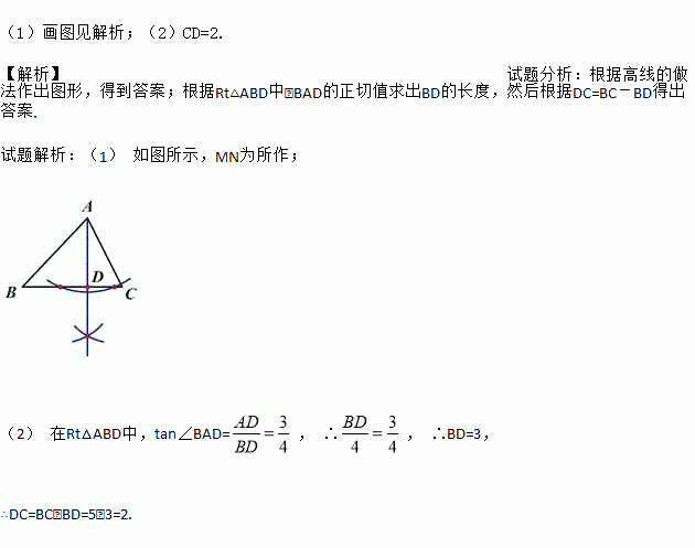 (1)过点A作BC边的垂线MN,交BC于点D(用尺规作图法,保留作图痕迹,不要求写作法);