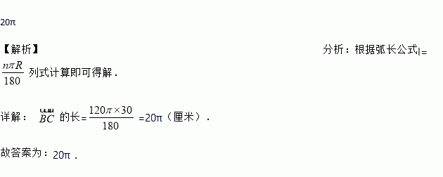 如图,扇形纸扇完全打开后,∠BAC=120°,AB=AC=30厘米,则的长为_____厘米.(结果保留π)