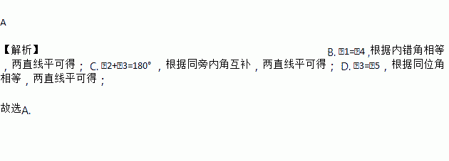 A. ∠1=∠3 B. ∠1=∠4 C. ∠2+∠3=180° D. ∠3=∠5