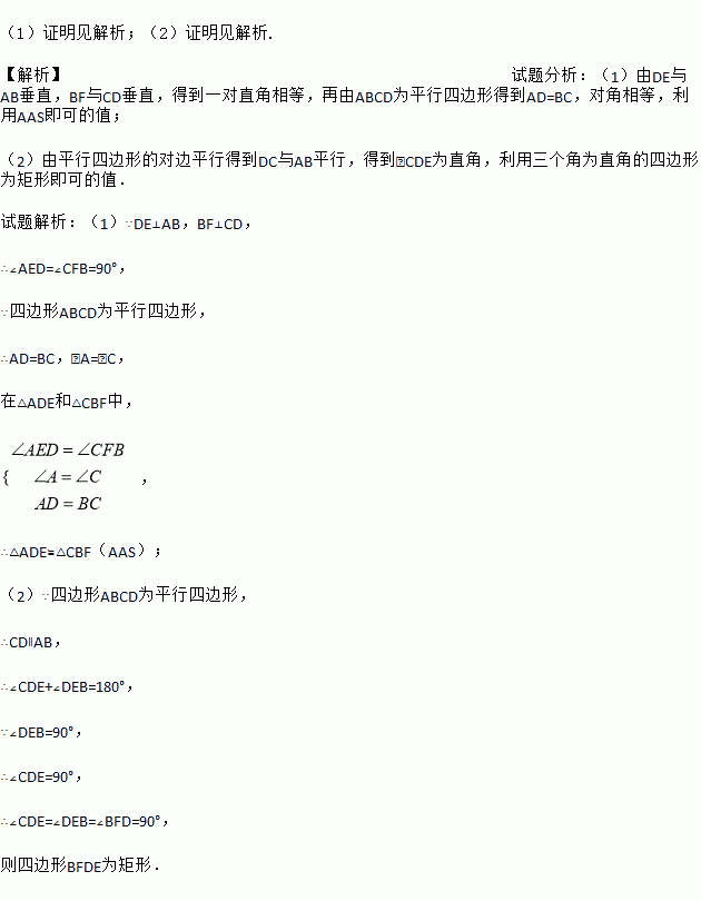 如图,在?ABCD中,DE⊥AB,BF⊥CD,垂足分别为E,F.