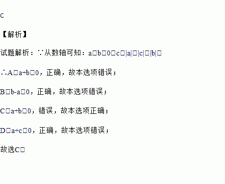 A. a+b<0 B. b﹣a>0 C. a+b>0 D. a+c<0