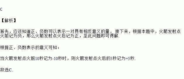 如果火箭发射点火前10秒记作-10秒,那么火箭发射点火后5秒应记作( )