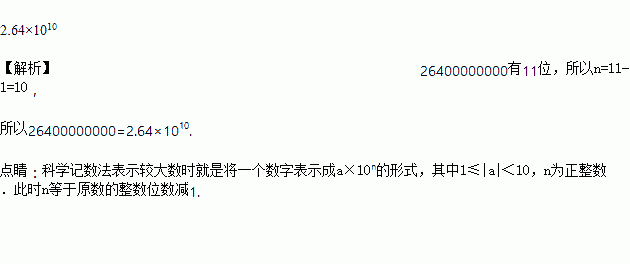 哈市地铁3号线二期工程需要建设资金264亿元,将26 400 000 000用科学记数法表示为_________.