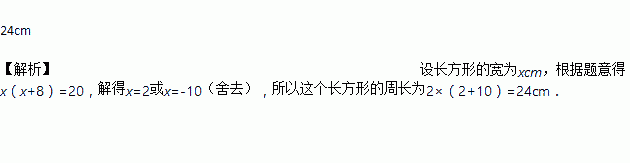长方形的长比宽多8cm,面积为20m2,则它的周长为________.