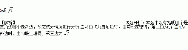 直角三角形的两边长分别为3和4,则其第三边的长度是_____________.