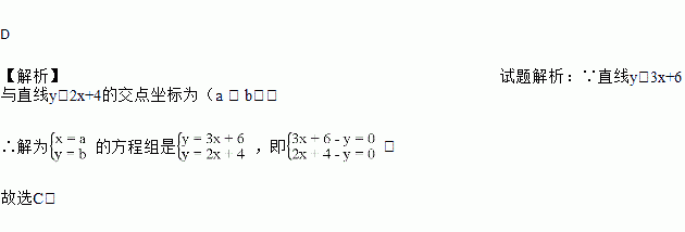 如果直线y=3x+6与y=2x-4的交点坐标为(a,b),则下列方程组中解是的是( )