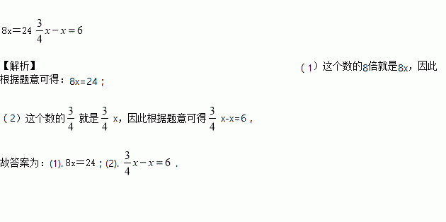 (1)某数的8倍是24:________;