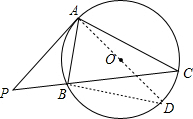 11.分析 过点A作直径AD,连结BD,如图,利用圆周角定理得到∠D+∠BAD=90°,∠C=∠D,加上∠PAB=∠C,则∠PAB+∠BAD=90°,所以AD⊥PA,然后根据切线的判定定理即可得到结论.